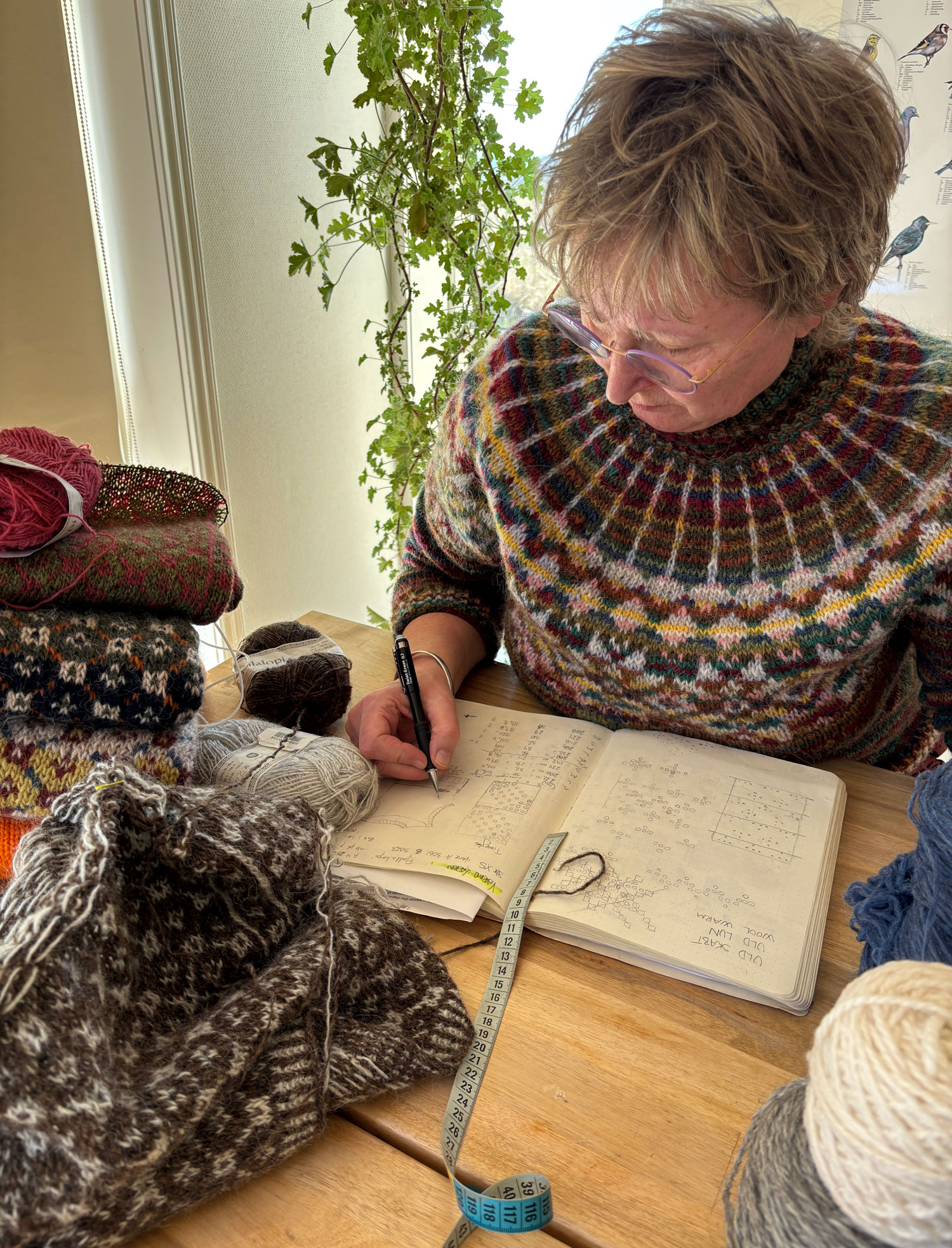 Jeg arbejder udelukkende med nordiske garner, udvalgt for deres særlige egenskaber, og bygger videre på den nordiske strikketradition, hvor lag-på-lag, slidstyrke og varme er i centrum.